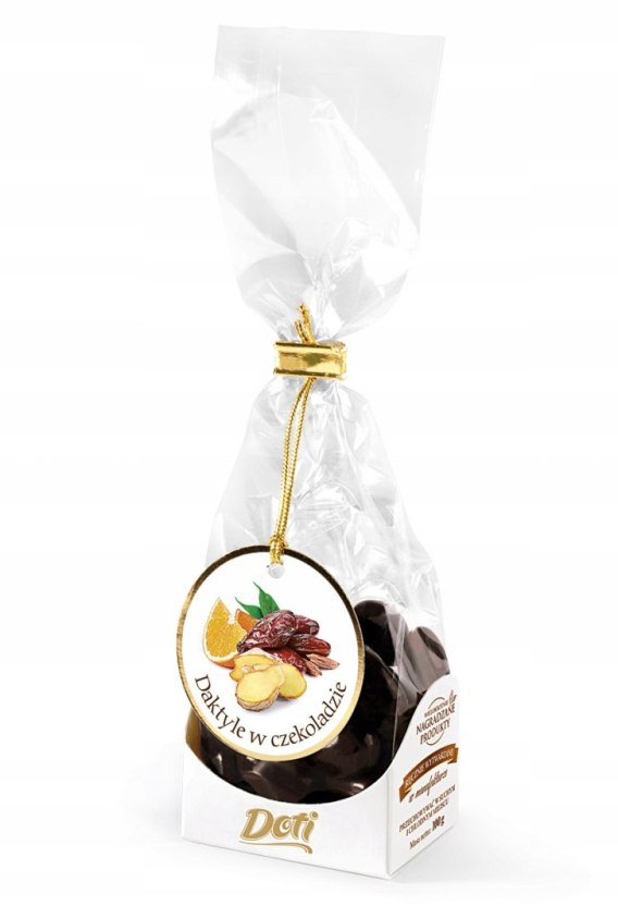 Daktyle w czekoladzie z imbirem i pomarańczą Doti to niezwykła harmonia słodyczy i aromatu — delikatna czekolada deserowa otula miękkie, naturalne daktyle, a nuty imbiru i pomarańczy nadają im wyrafinowany, rozgrzewający charakter.