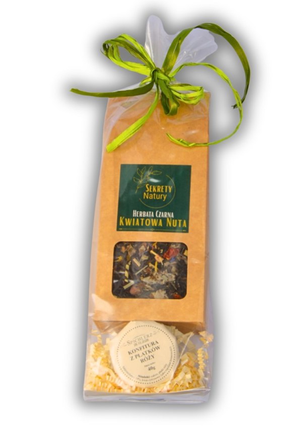 Upominek zestaw herbata i konfitura z róży elegancki podarunek na prezent
