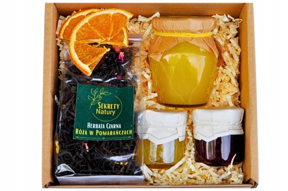 • Zestaw prezentowy herbata, miód i konfitury - Róża w Pomarańczach
