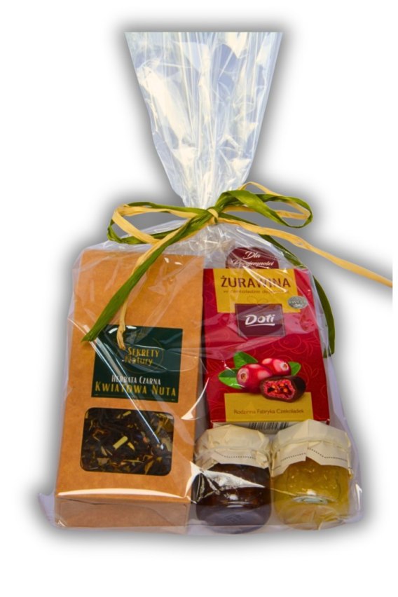 Zestaw prezentowy herbata, żurawina w czekoladzie i konfitury - upominek